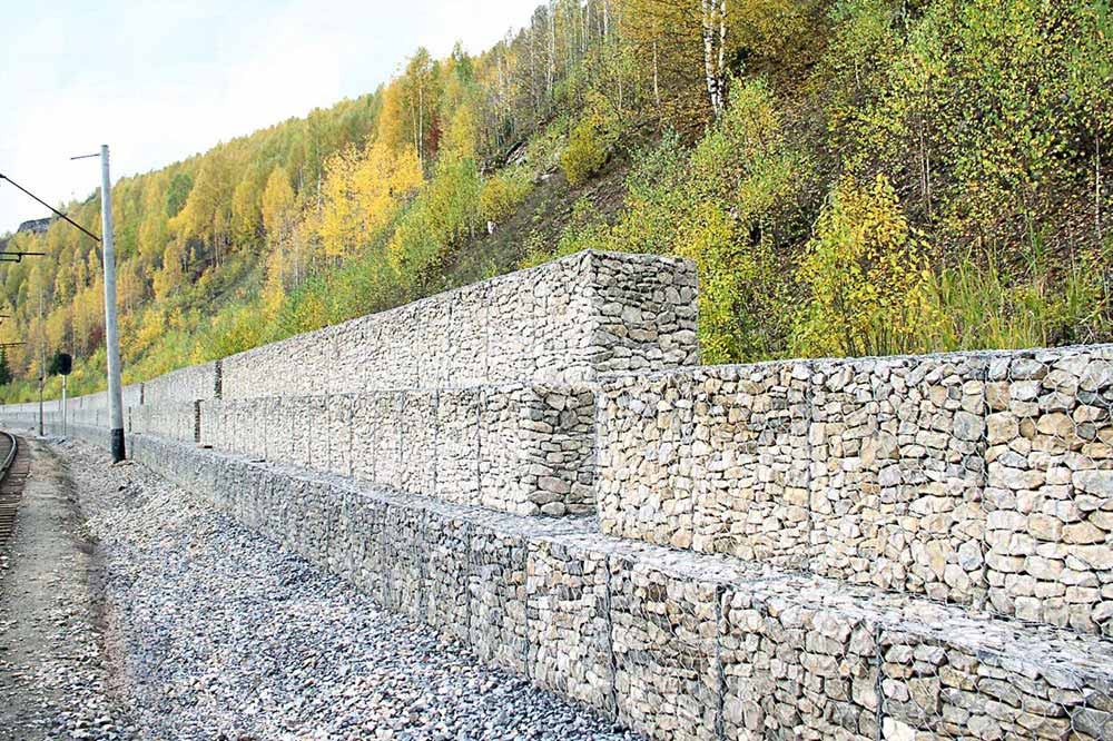 Kè rọ đá được sử dụng trong các công trình xây dựng đường xe lửa đi qua các khu đường núi ngoài khả năng gia cố địa chất, còn có khả năng giảm tiếng ồn, và chống rung hiệu quả.