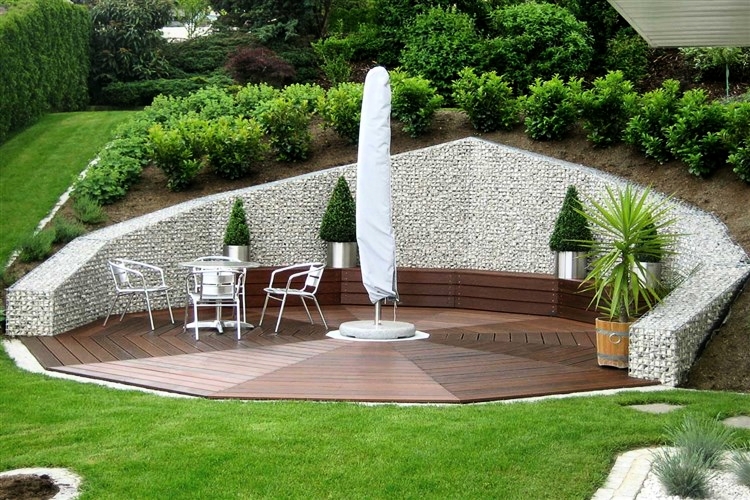 Thiết kế sân vườn thêm phần ấn tượng với một bức tường rọ đá. Đó thực sự là một ý tưởng làm hàng rào đẹp mắt hơn những gì bạn nghĩ, nếu bạn đầu tư hơn vào đá trang trí hoặc có sự kết hợp hoàn hảo của các vật liệu khác. Loại hàng rào này ngoài mang ý nghĩa phân cách và bảo vệ ngôi nhà, nó còn giúp giảm tiếng ồn hiệu quả, đồng thời giúp tránh gió trong điều kiện xây dựng ở những khu vực lớn, trống trải.